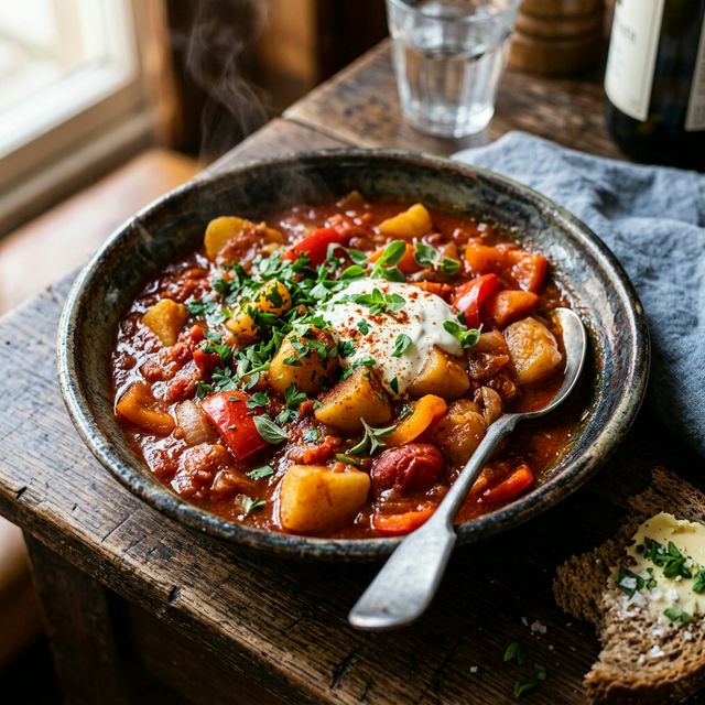 Das vegetarische Kartoffelgulasch ist ein ehrliches und nahrhaftes Gericht für jeden Tag. Guten Appetit!